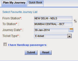 - Login to your nget account and after clicking on Proceed For Booking you will come on Plan My Journey page. Enter your station codes and journey date, choose ticket type e-ticket and choose I have handicap passenger if you have anyone with you or you yourself else leave it. Now, click on submit.