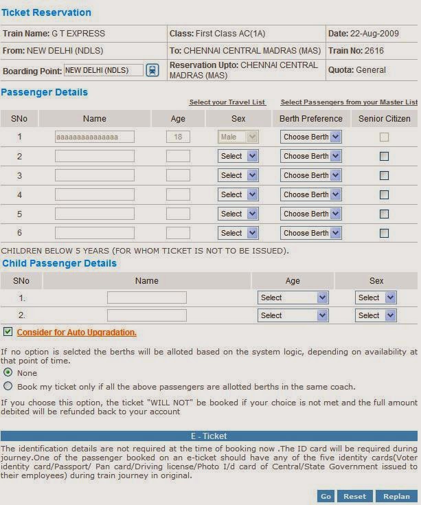 Enter the details of the passenger. Check/Click on the Consider For Auto Upgradation, this helps in if the seats are not available as required by the passenger they will book your ticket with other birth preferences.